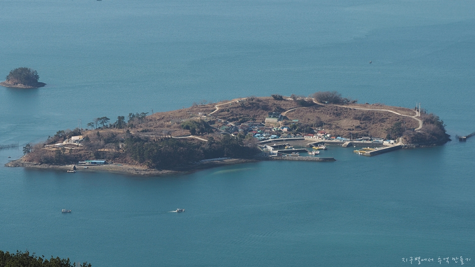 좌측 뒤로 보이는 욕지도와 수우도, 두미도 ..