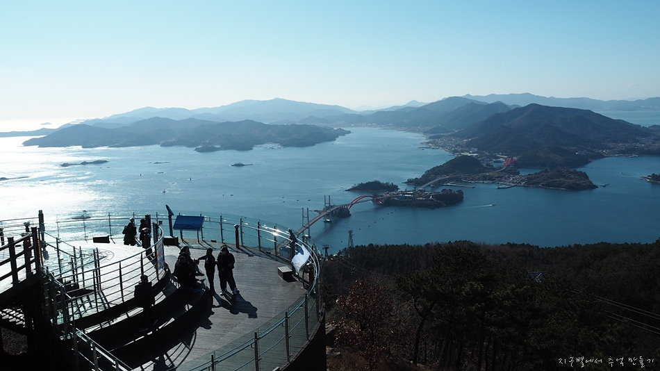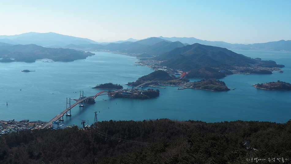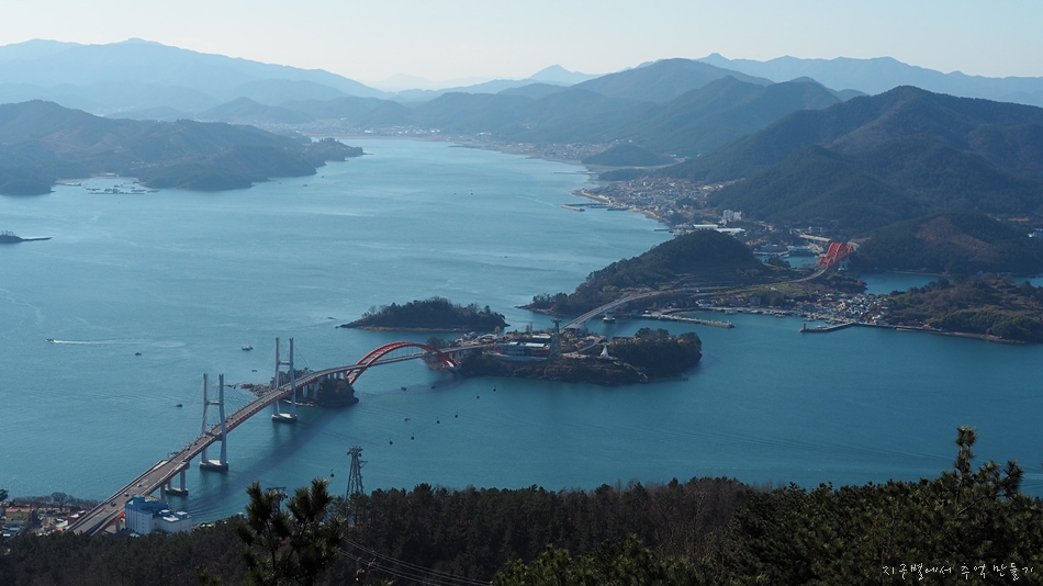 창선도를 거쳐 남해섬으로 이어지는 다리와 도로가 멋지게 내려다 보이네요.