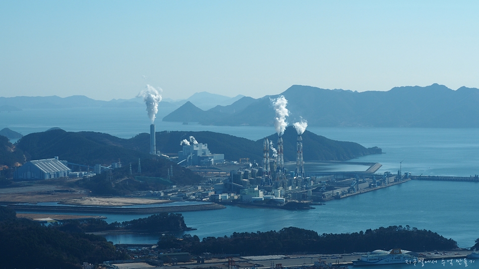 산불초소 앞 전망대에 올라가서 본 화력발전소와 사량도