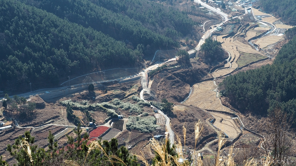 아래로는 하산해서 가야 할 계곡 임도길.