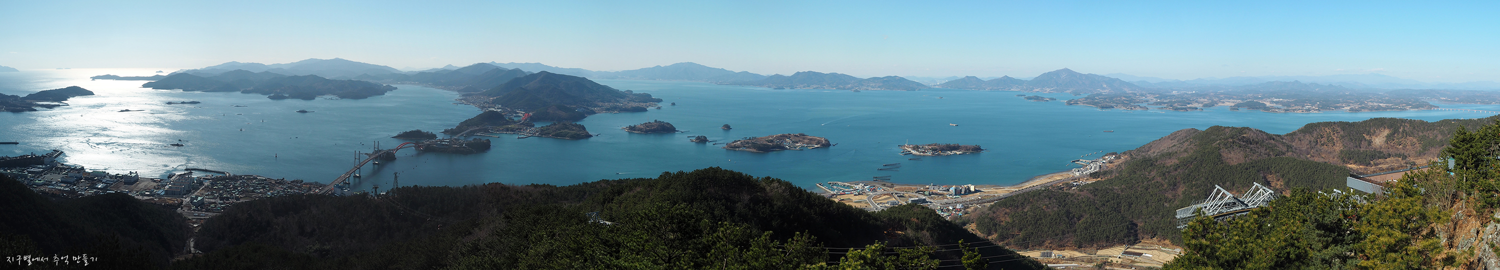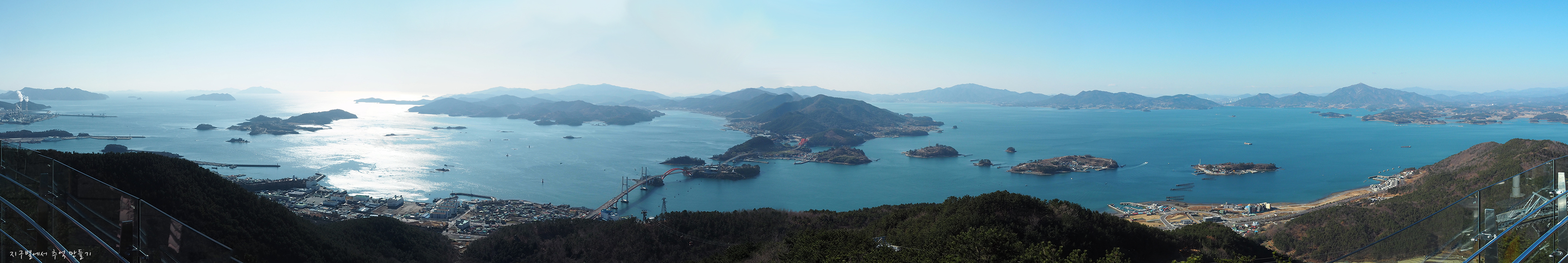 뒷편으로 남해로 들어가는 다리들이 멋진 라인을 만들고 있습니다.