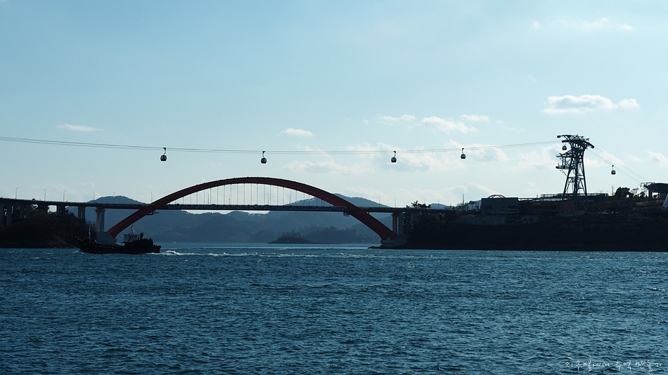 주 교각 옆으로는 초양도에서 시작되는 케이블카가 쉼없이 움직이고 있구요.