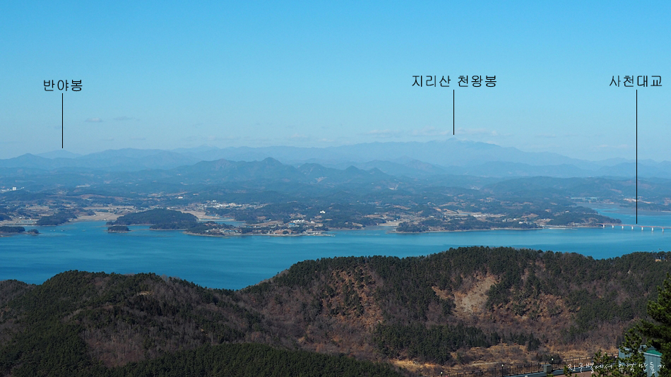 숲길 사이로 사천대교와 지리산이 보이구요.