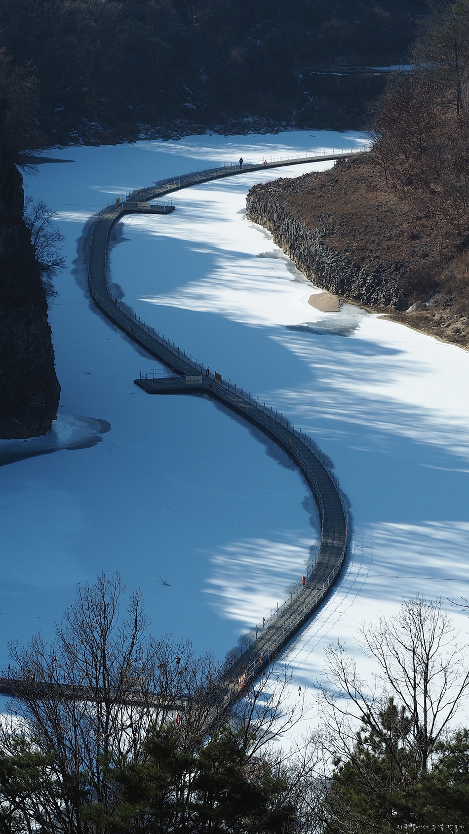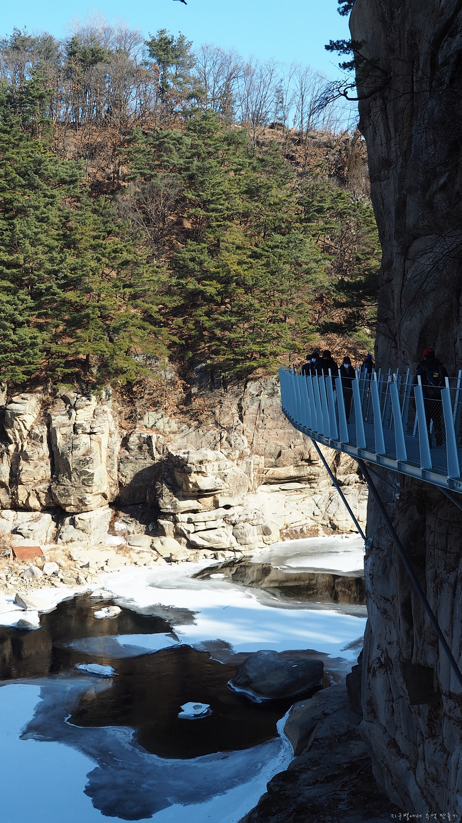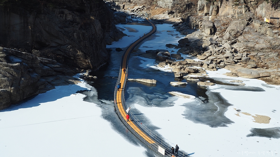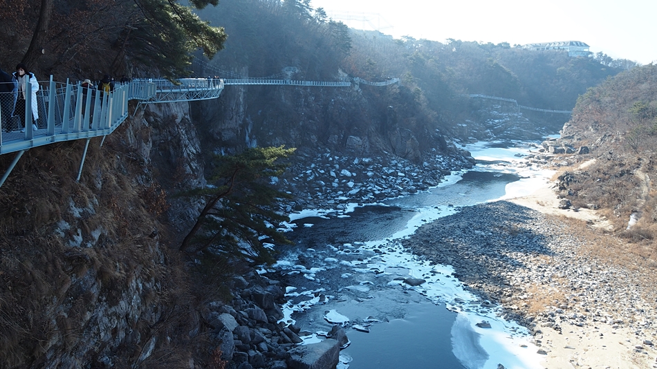 이전에는 겨울에 한탄강 얼음 트레킹(보기)이 유행이었는데 이제는 잔도가 그 자리를 대신합니다.