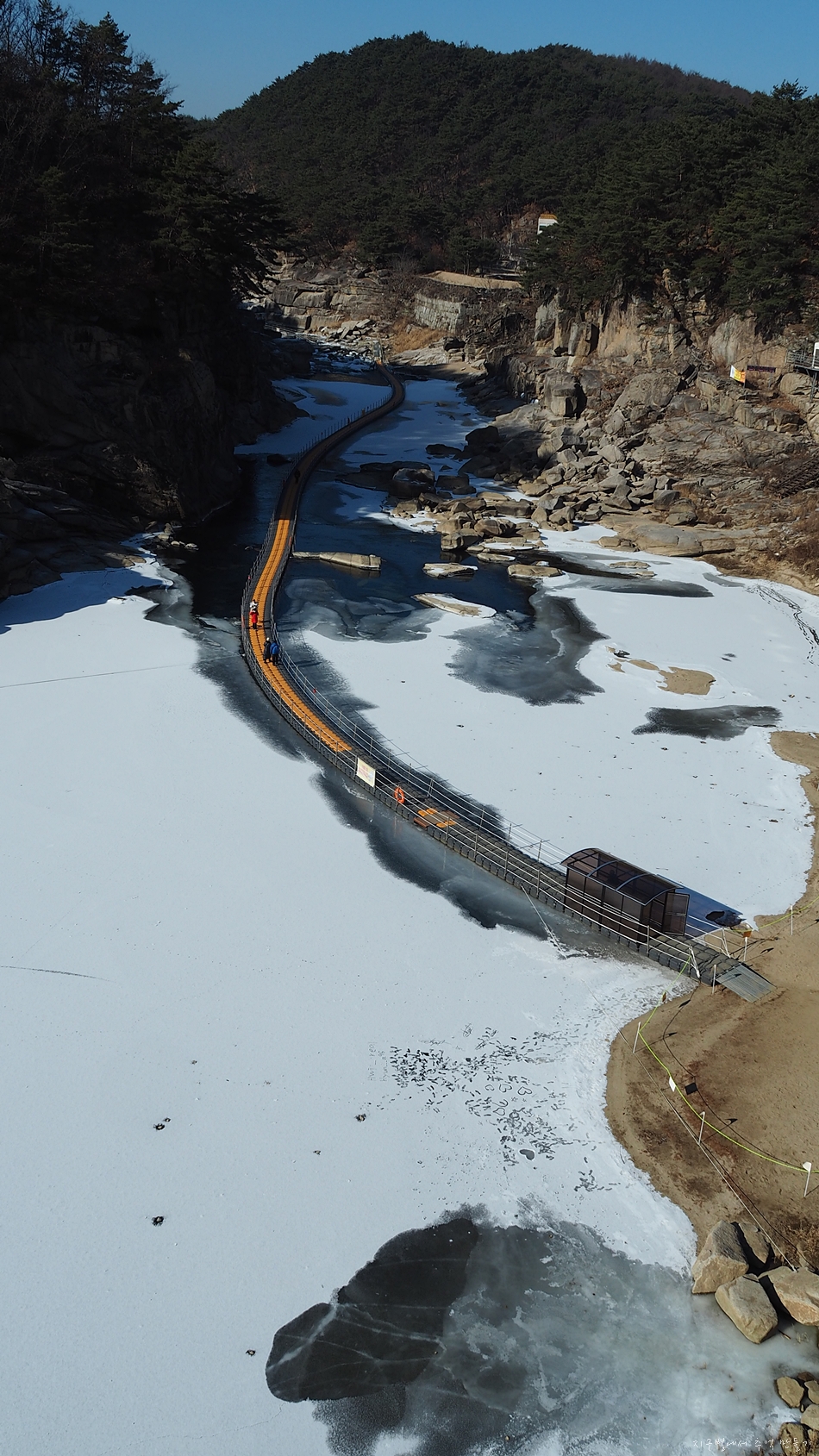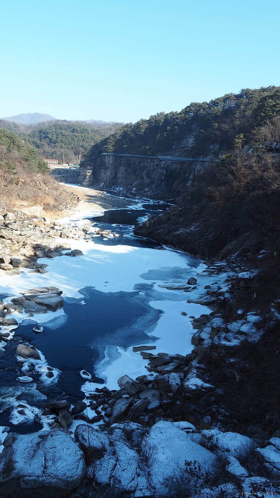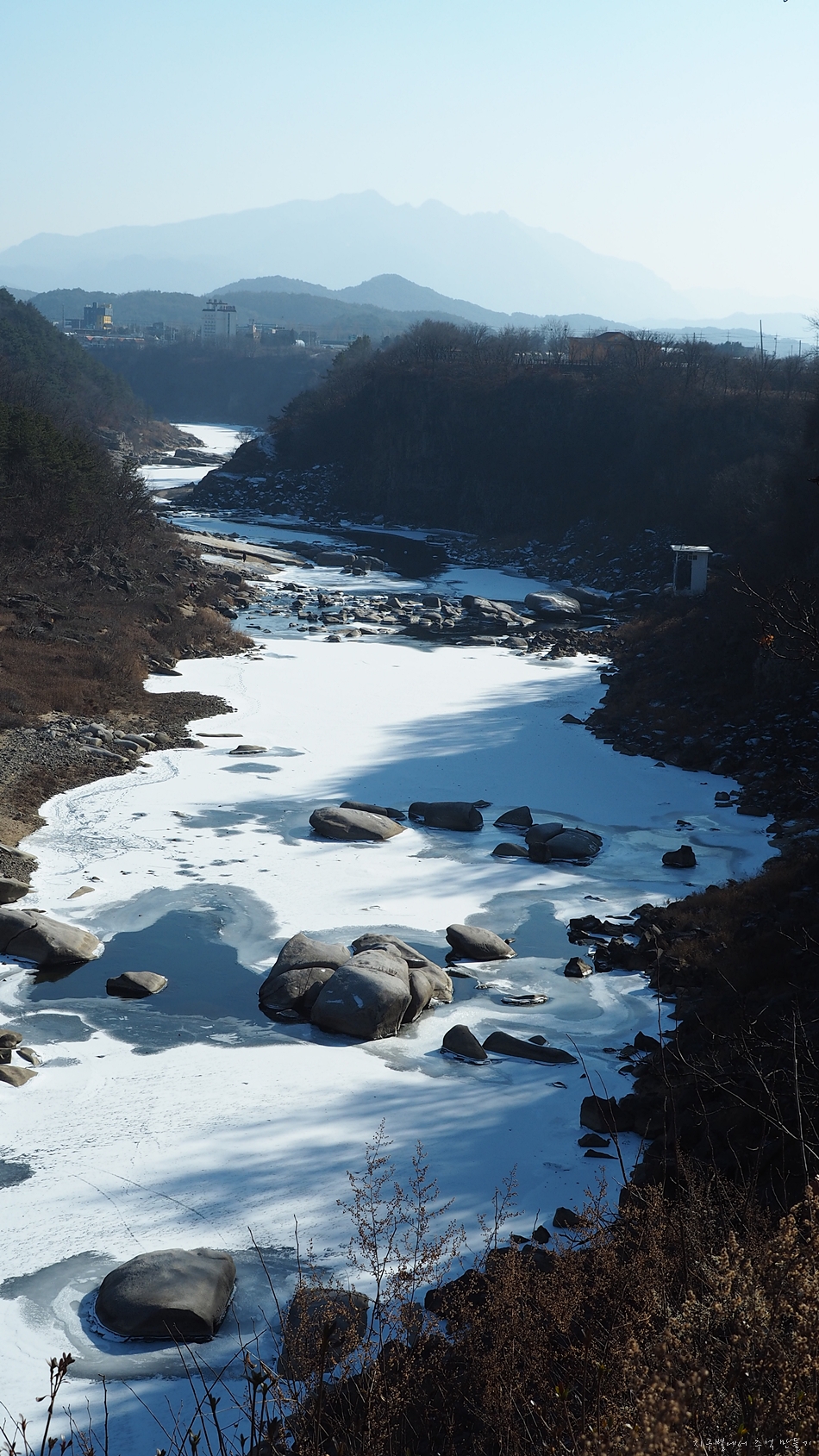강바닥은 꽁꽁 얼음입니다.