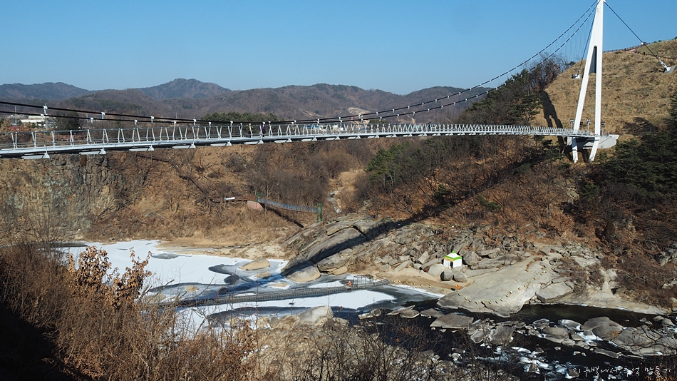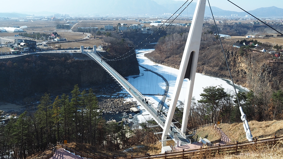 한탄강 송대소에 새로 설치된 다리로서 강바닥과의 높이 50m, 주탑은 비대칭으로 서 있는 현수교입니다.