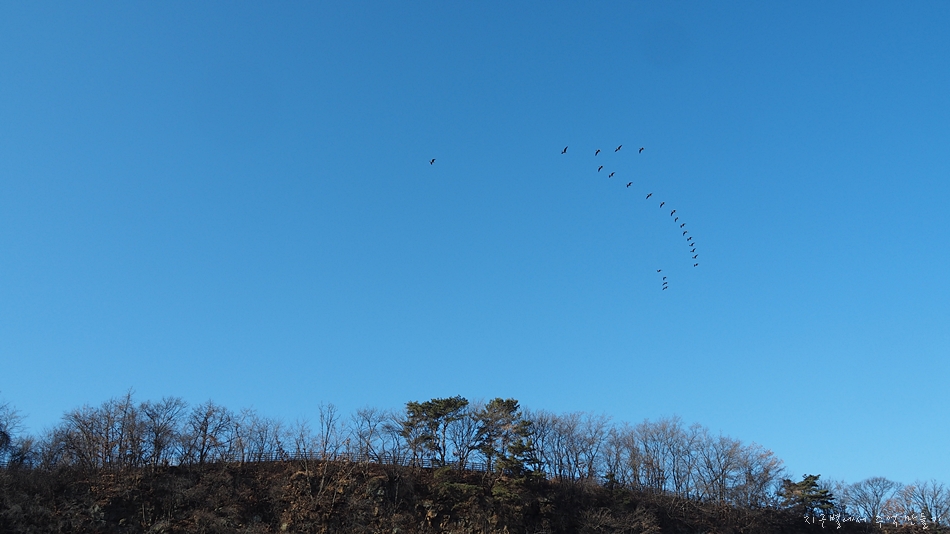 철새들이 지들 나름대로 질서를 만들어 날아가고 있네요.