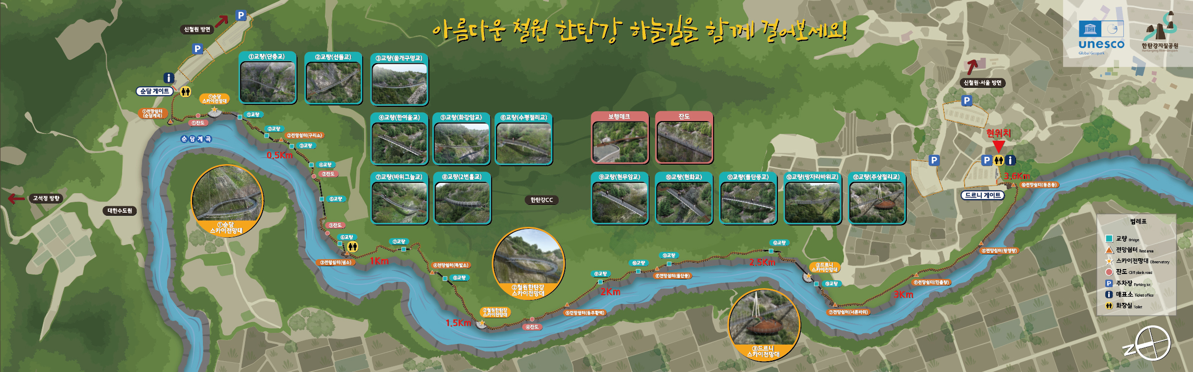 한탄강에는 물 위를 걷는 물윗길도 있고 이번에 조성된 하늘길도 있답니다.