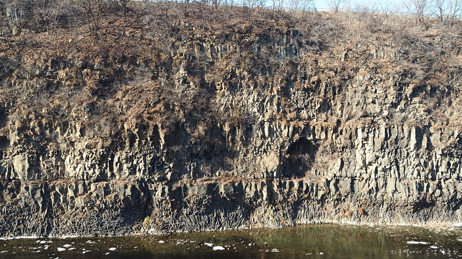 강 건너편의 주상절리도 구경꺼리입니다.