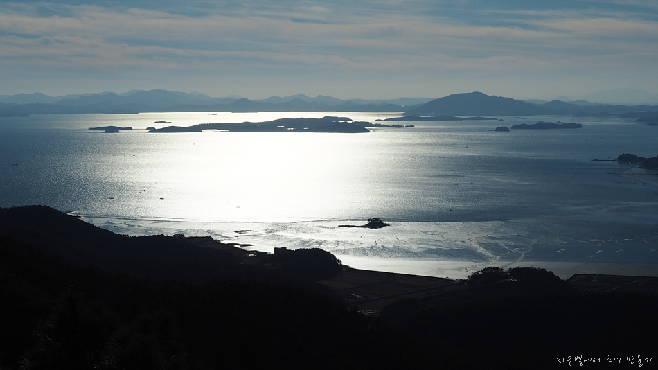 여자만 아름다운 다도해 섬들과 여수 화양면의 해안이 내려다 보입니다.