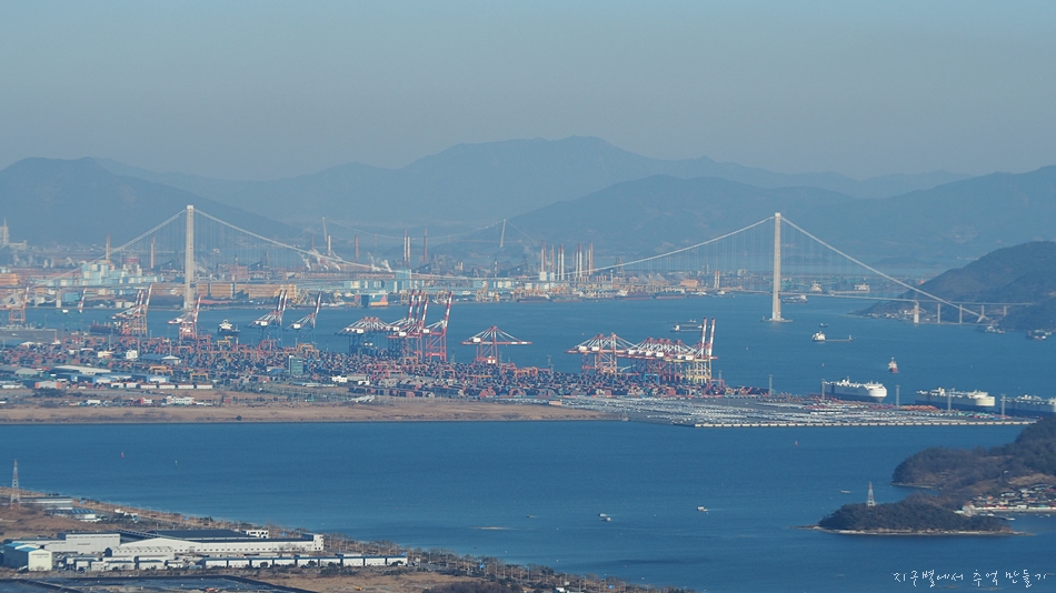 여천산단과 함께 좌측으로 남해 망운산이 솟아 보이네요.
