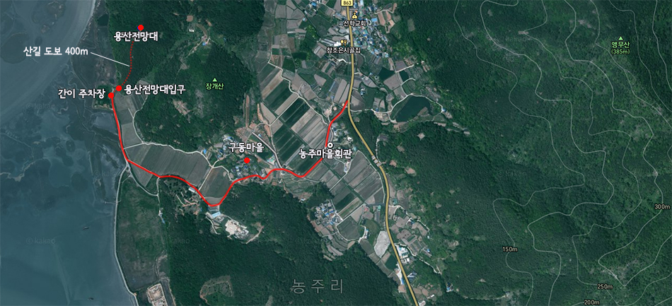 용산전망대 가는 길을 지도에 표시해 두었습니다.