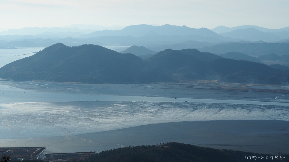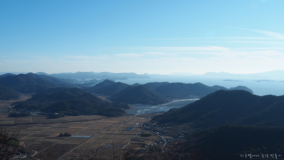 좌측 뒤로 가장 멀리 보이는 산이 천관산으로 생각되네요.