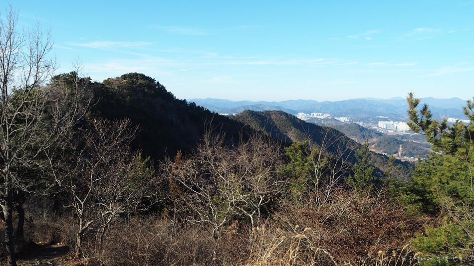 정상에서 다시 조금 되돌아와 잡목 사이로 보이는 동쪽 파노라마.