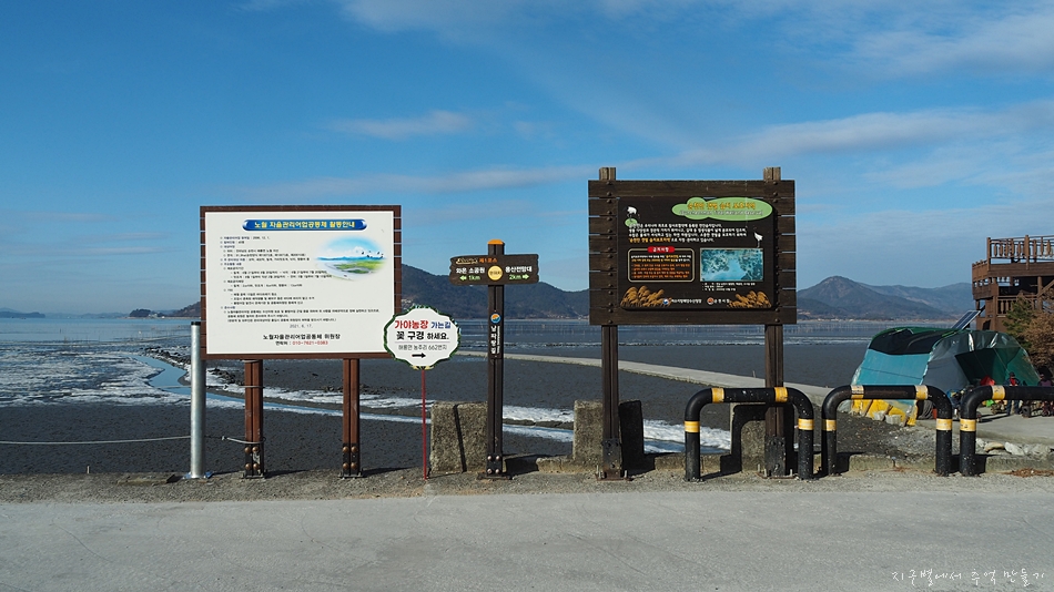 아침식사하고 한시간 정도는 남파랑길을 걷다가 되돌아와서 남쪽에 있는 와온공원으로 가서 화장실에서 세면하고 차를 달려 순천만국가정원으로 갔답니다.