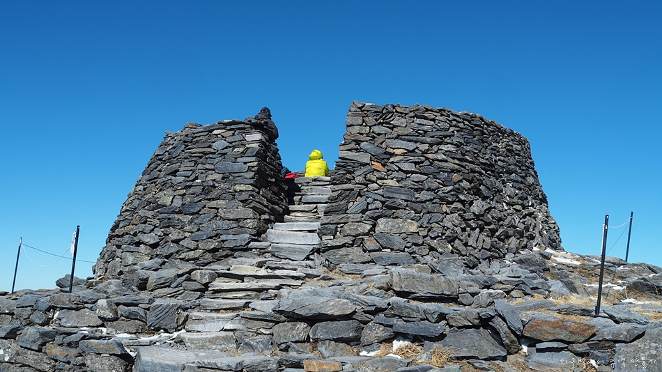 부쇠봉 가기 전 또 하나의 천제단이 있는데 그곳 아래에서 바람을 피해 식사를 하고 있는 분의 모습이 약간 애처롭...