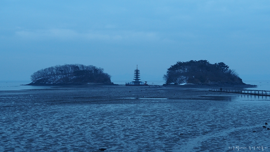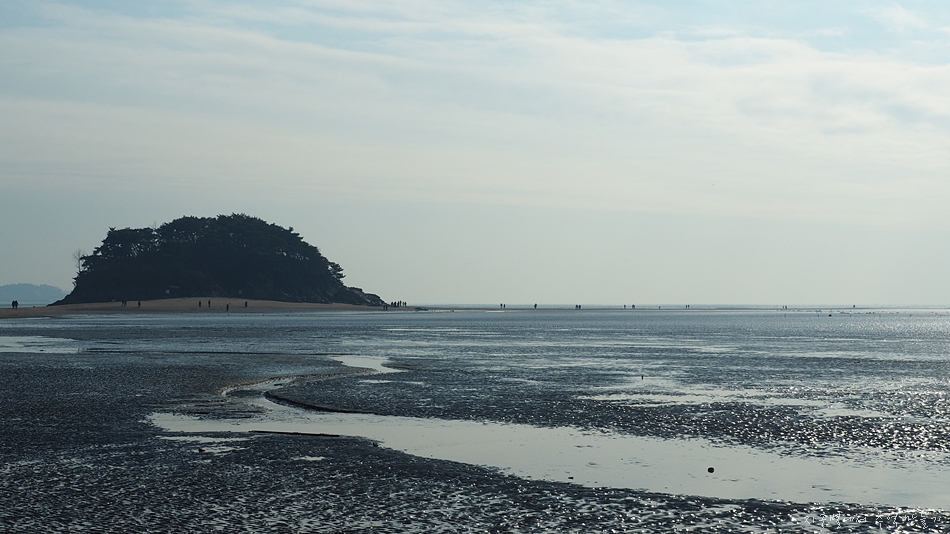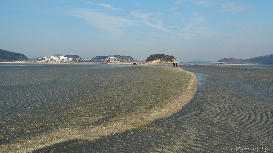 앞에 목섬에 물이 빠져 바닷길이 열렸습니다.