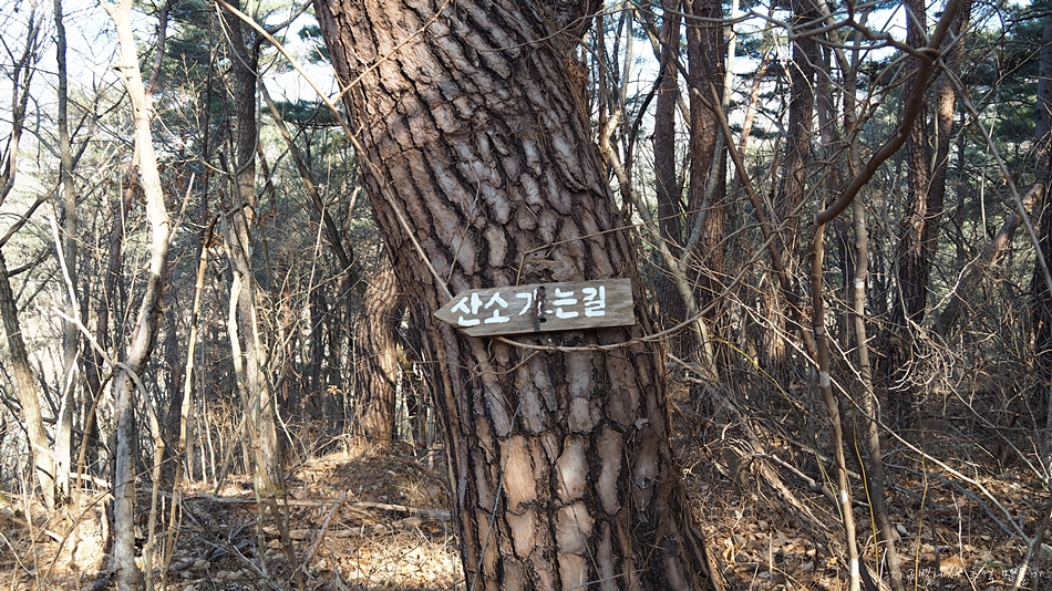 조금 내려와 만나는 이정표 갈림길에서 좌측 방향으로 내려 갑니다.