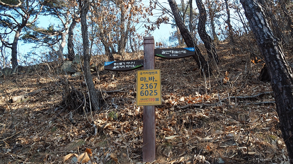 임도를 따라 약 5분 정도 진행을 하면 우측으로 산길을 안내하는 이정표가 서 있고 이곳부터 다시 산길입니다.
