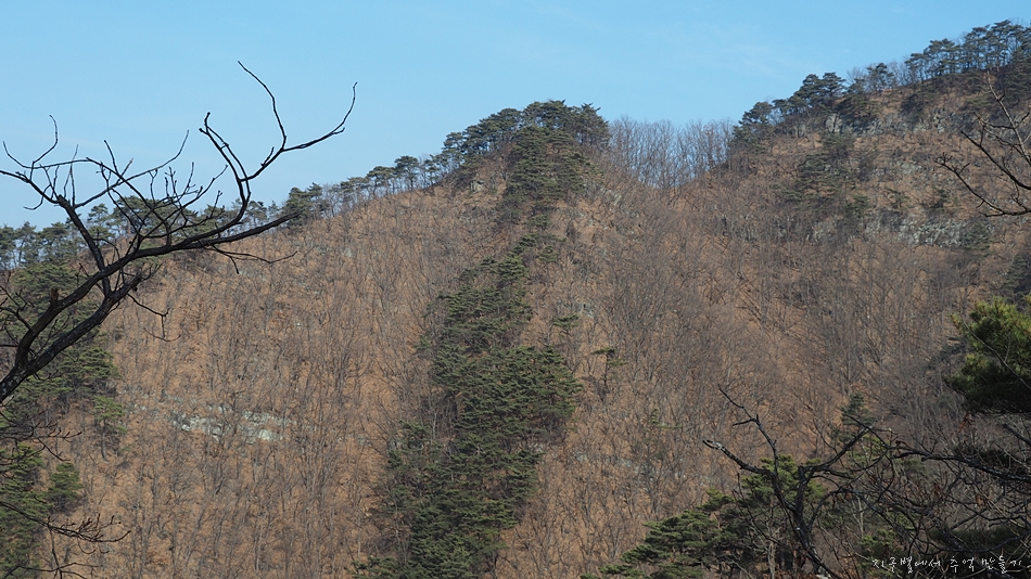 하산 내내 조망은 거의 트이지 않지만 잡목 사이로 보이는 건너편 능선이 특이 합니다.