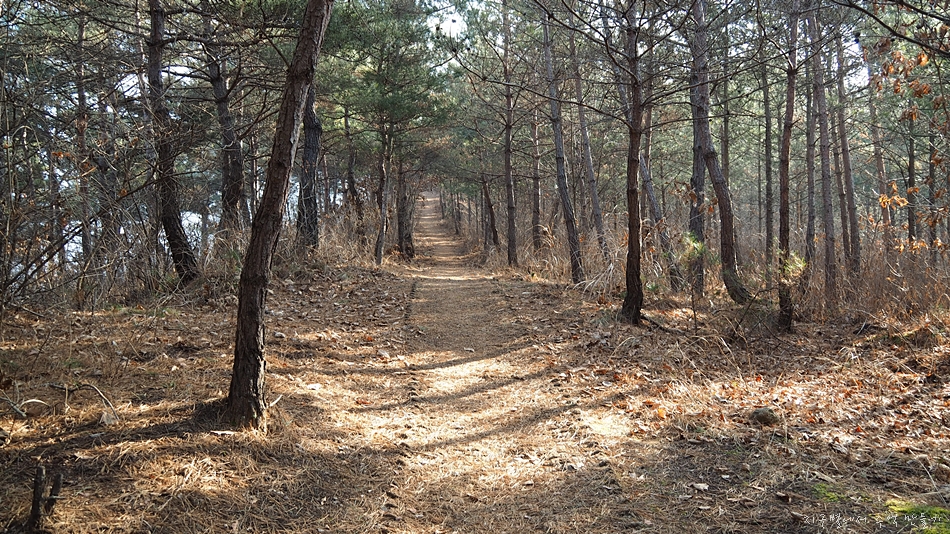 경사진 비탈길을 내려오면 좌측으로 임도와 나란히 걷다가 조금 후 임도와 만나게 되네요.