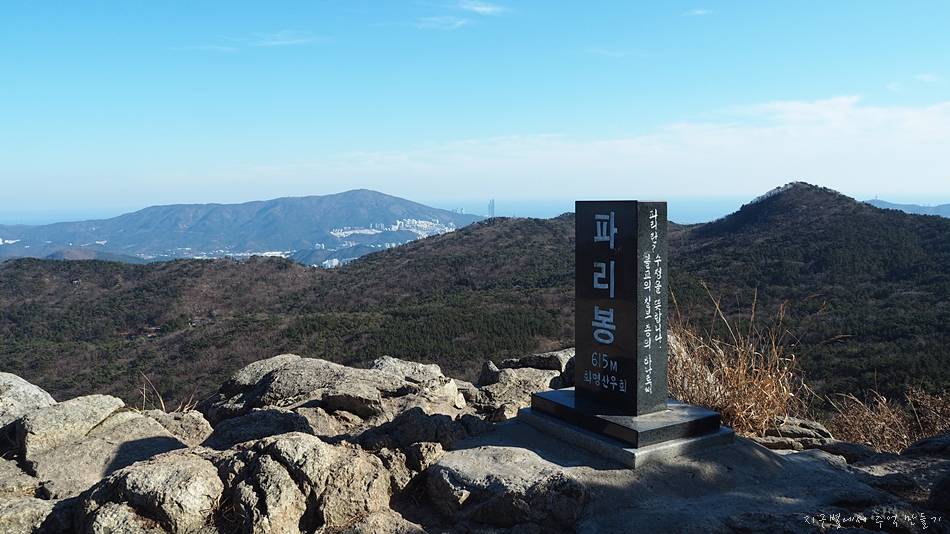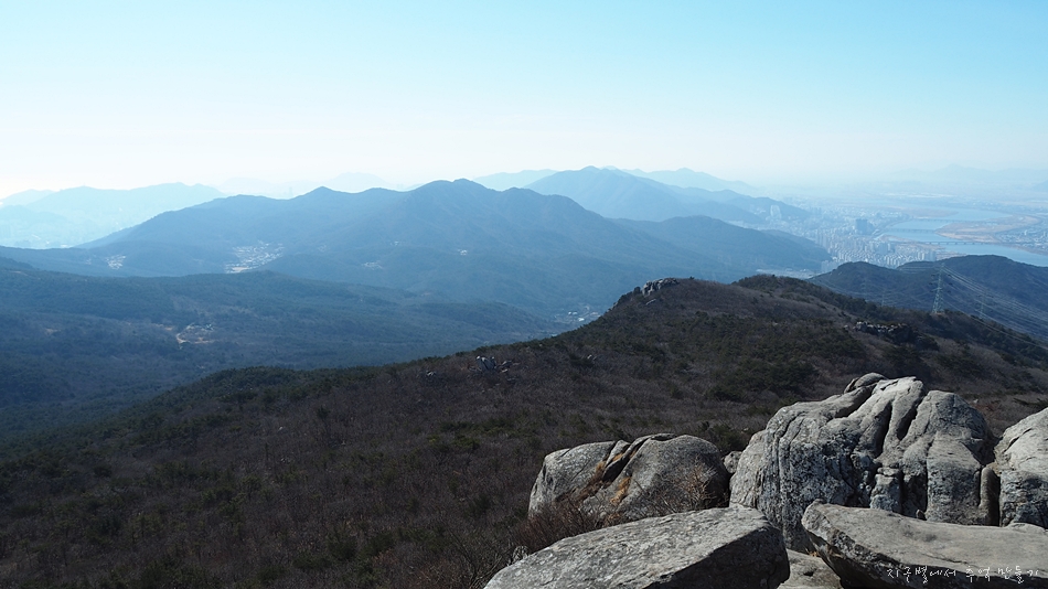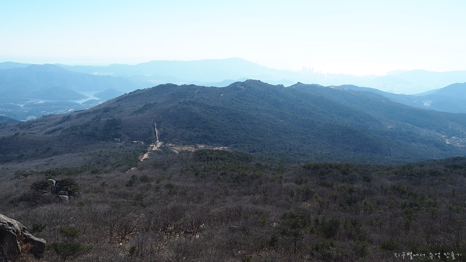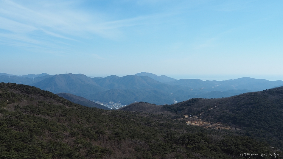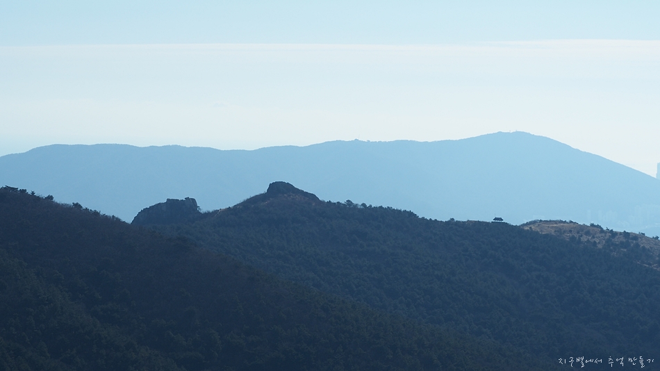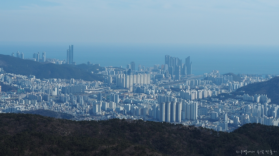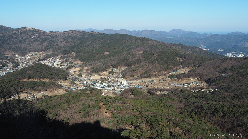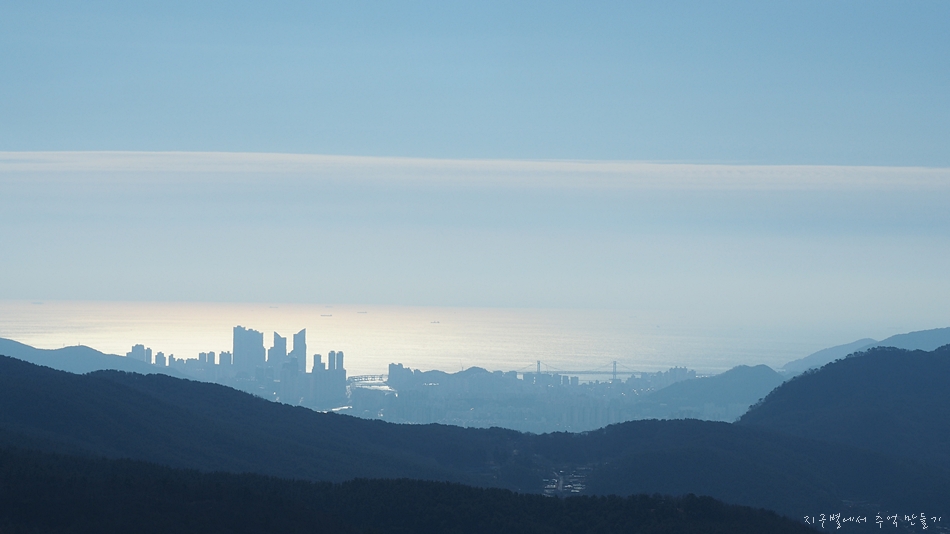 맨 뒤에 솟아오른 달음산, 그앞으로 철마산이 건너 보입니다.