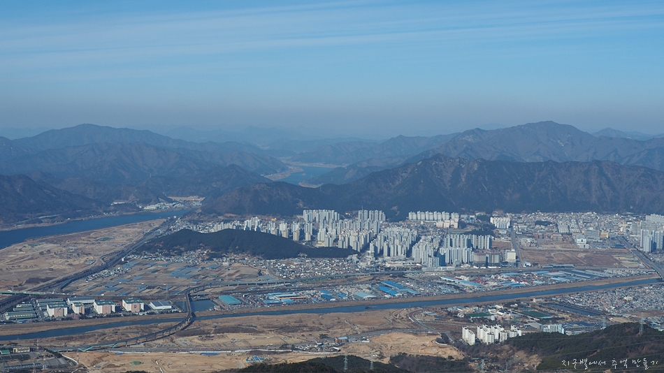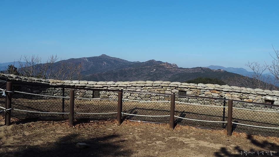 아랫쪽 산성 내의 마을과 건너편 상계봉과 파리봉이 보이네요.