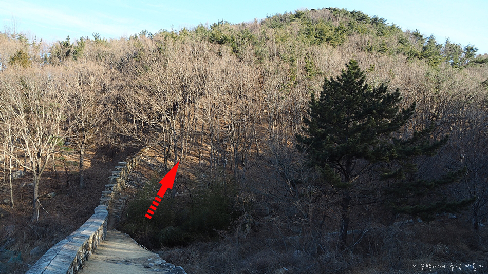 성곽을 따라 한참 올라가야 합니다.(화살표)