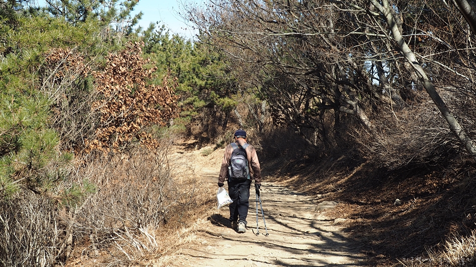 쓰레기 봉투를 들고 등산로의 쓰레기들을 줍고 계시네요.