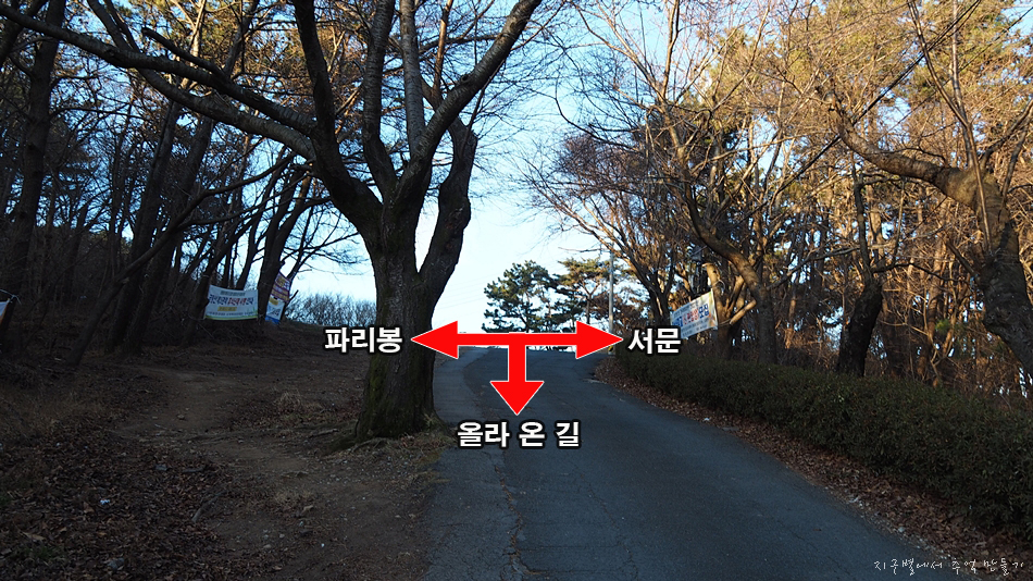 좌측은 파리봉, 우측은 서문으로 가는 길입니다. 이곳에서 우측 서문 방향으로 이동...