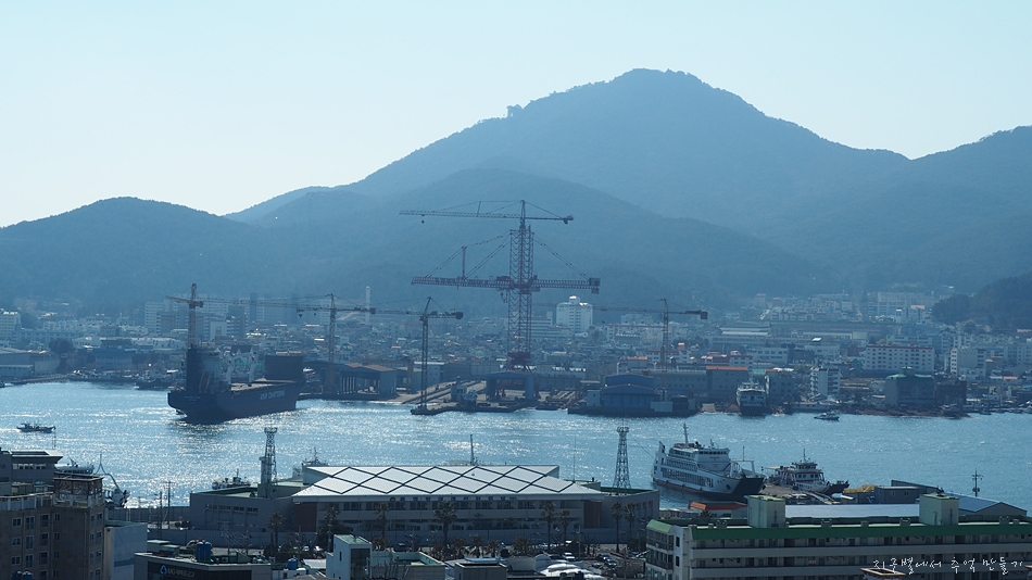 서포루에 서면 통영의 중심항이 강구안이 내려다 보이고 건너편으로 동피랑이 마주합니다.