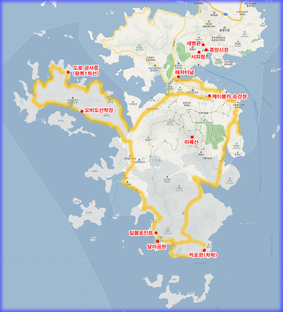 이번에 둘러 본 통영 여행지도입니다.