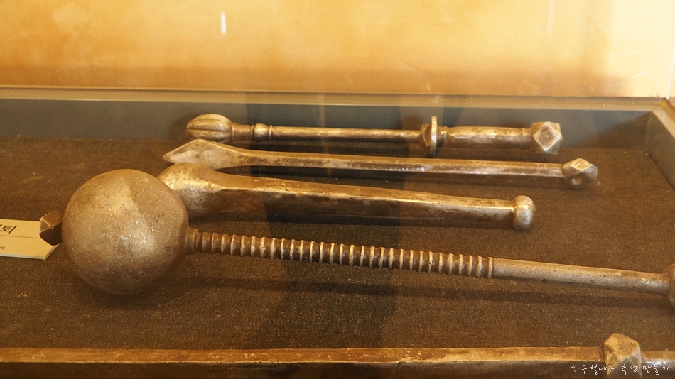중간 위에 문을 걸게 하는 장석 쇠고리가 아래로 튀어 나와 있어 머리와 부딫치면 꽤 아픔(경험자의 소감)