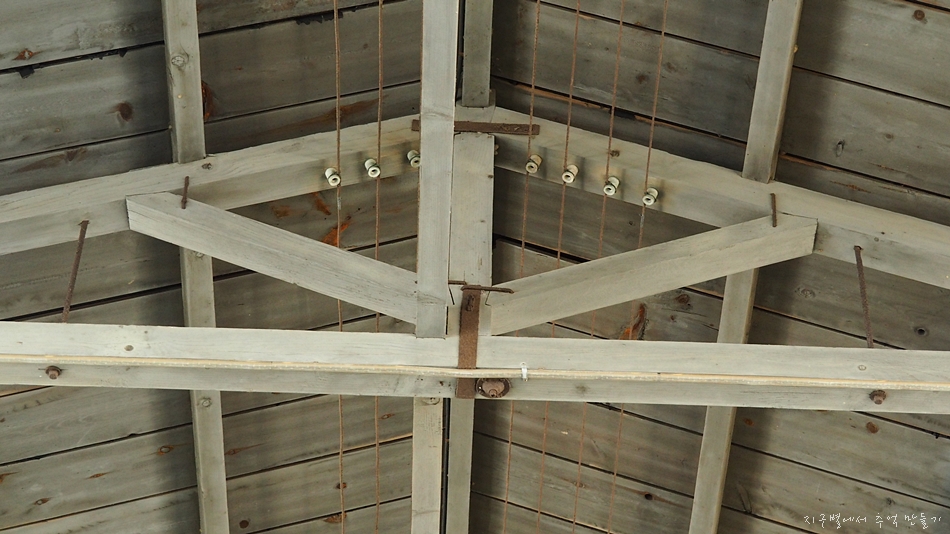 천정의 목 지붕은 그때것인지는 확인이 되지 않는데 아마도 각이 잡힌걸로 봐서는 그 시절 만든것 같습니다.