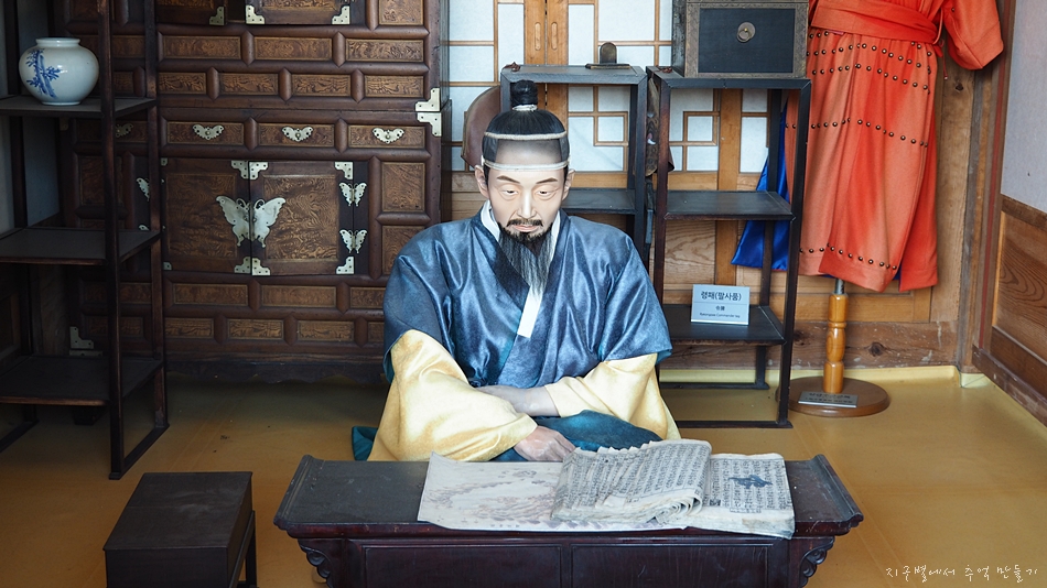 장군의 모습인데 책은 보지 않고 딴 생각 하는듯...