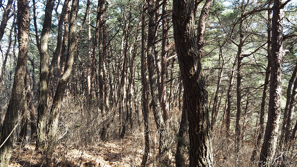 소나무 숲길인데 잡목과 잡풀이 많아 여름에는 생채기 각오해야 할듯.