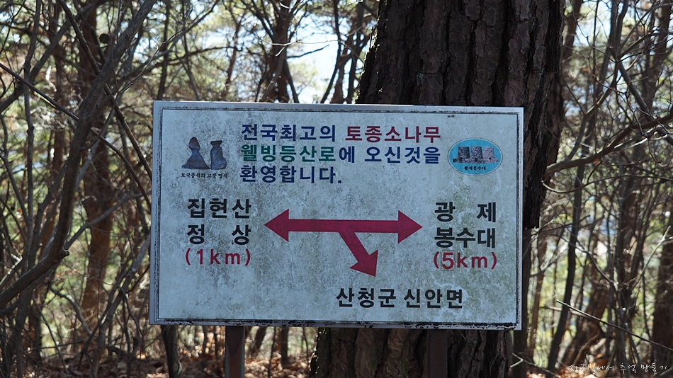 "전국 최고의 토종 소나무 웰빙 등산로"라는 글씨가 적혀 있습니다.