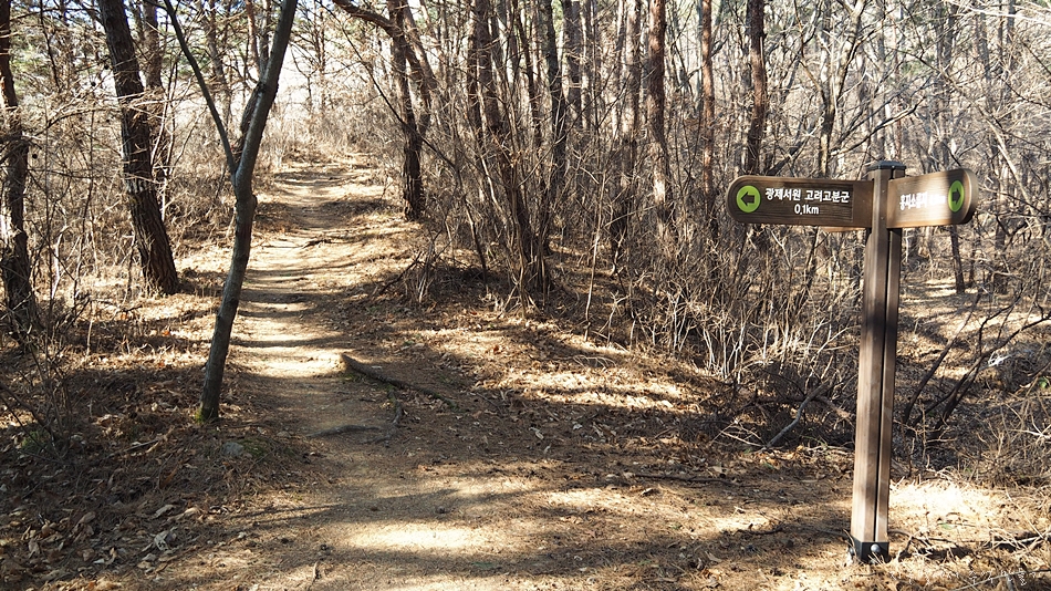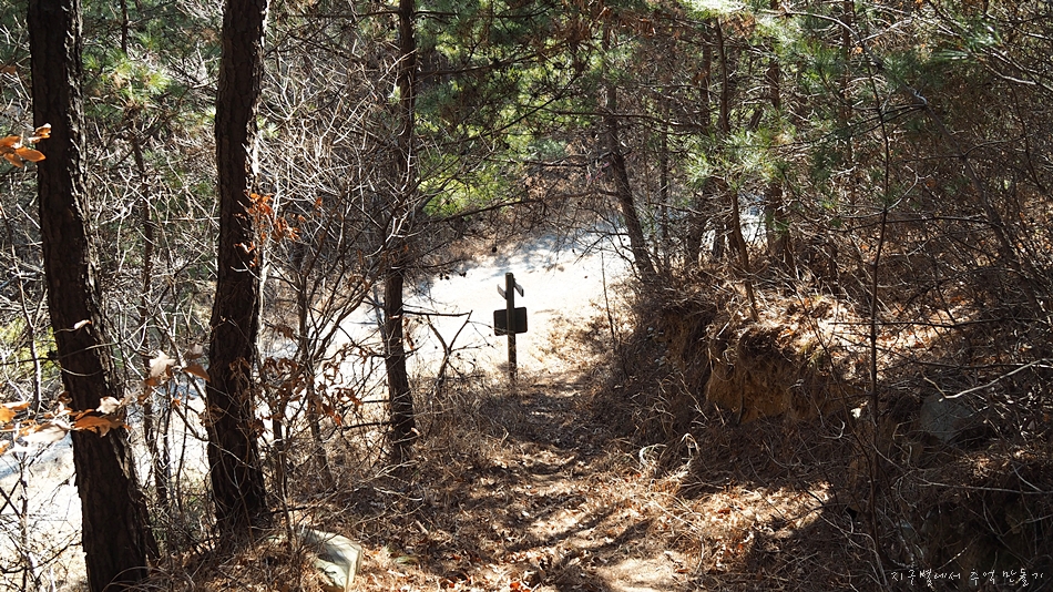 앞쪽에 보이는 돌비석을 지나 조금 더 가면 다시 왼편 산길로 들어서게 되구요.