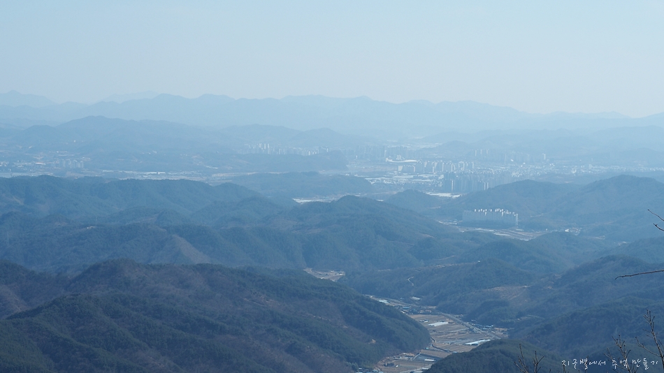 진주 시가지는 초소 뒤편, 월아산 앞인데 연무가 조금 있어 희미하게 보입니다.