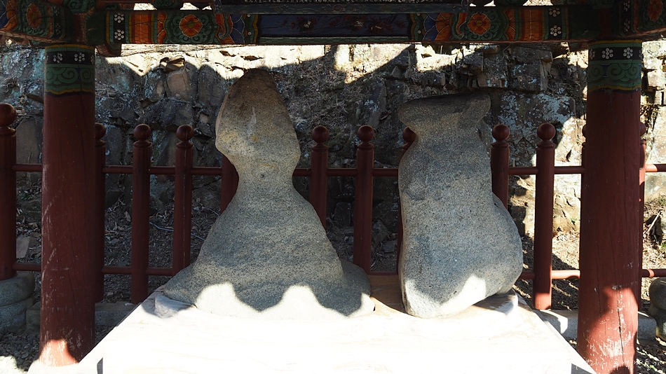 이 전각안에 비치되어 있는 두개의 돌이 명석입니다.