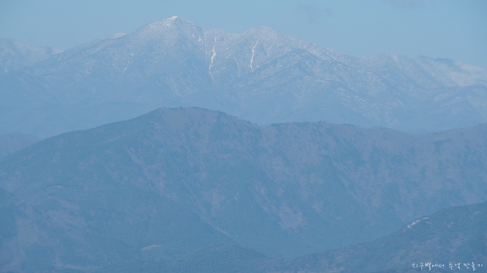 동쪽에서 지리산을 조망하는 경우가 특이한데 오늘은 정동에서 지리산 천왕봉을 감상하게 되네요.