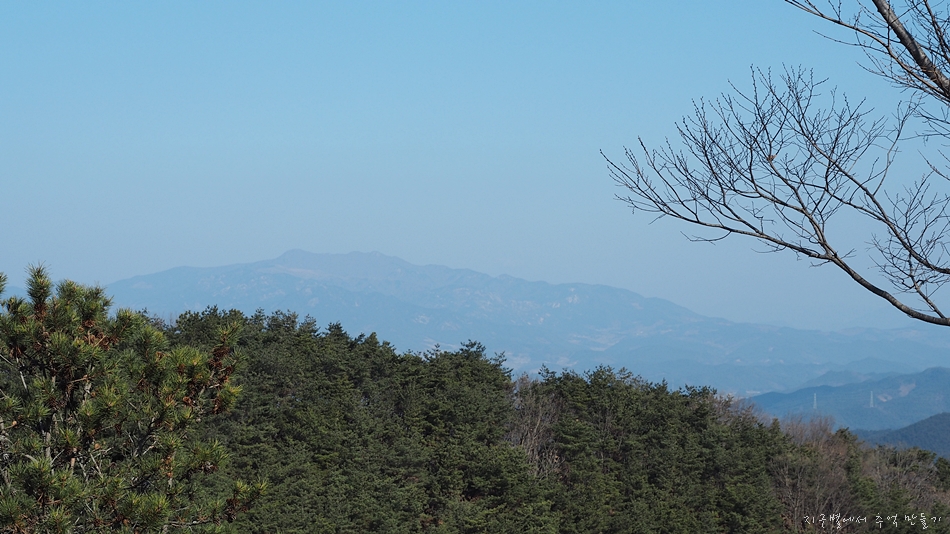 중간에 살짝 조망이 트이는데 멀리 황매산입니다.