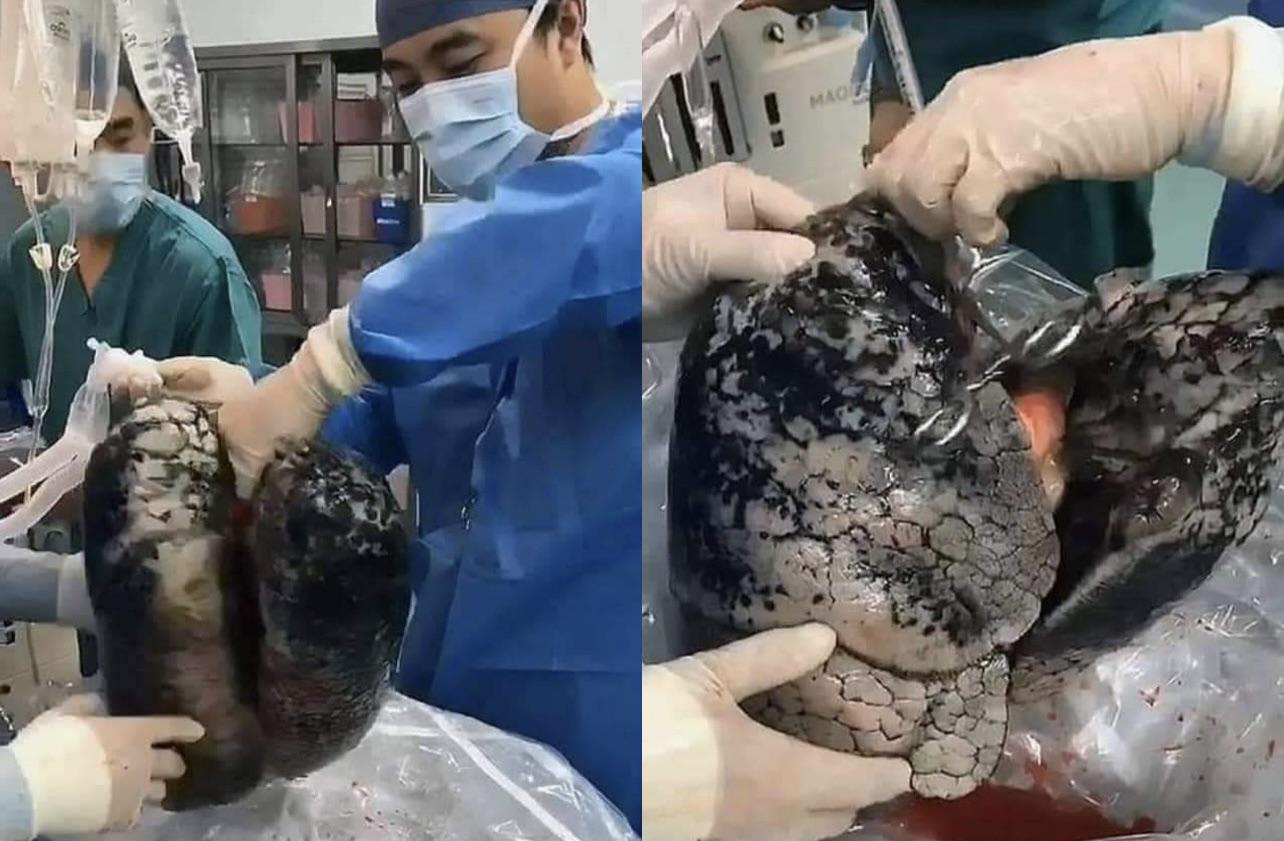 5. 30년동안 매일 한갑씩 담배를 피우다 52세의 나이로 사망한 남성의 폐 사진