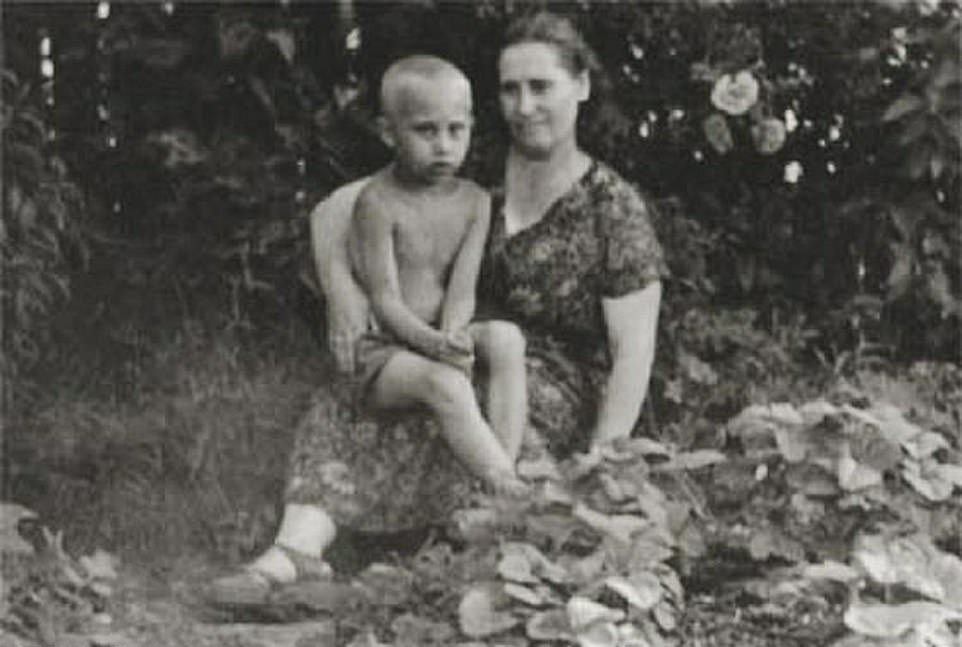2. 1958년 7월, 어머니 마리아 이바노바 푸티나의 무릎에 앉아 있는 5세의 젊은 블라디미르 푸틴