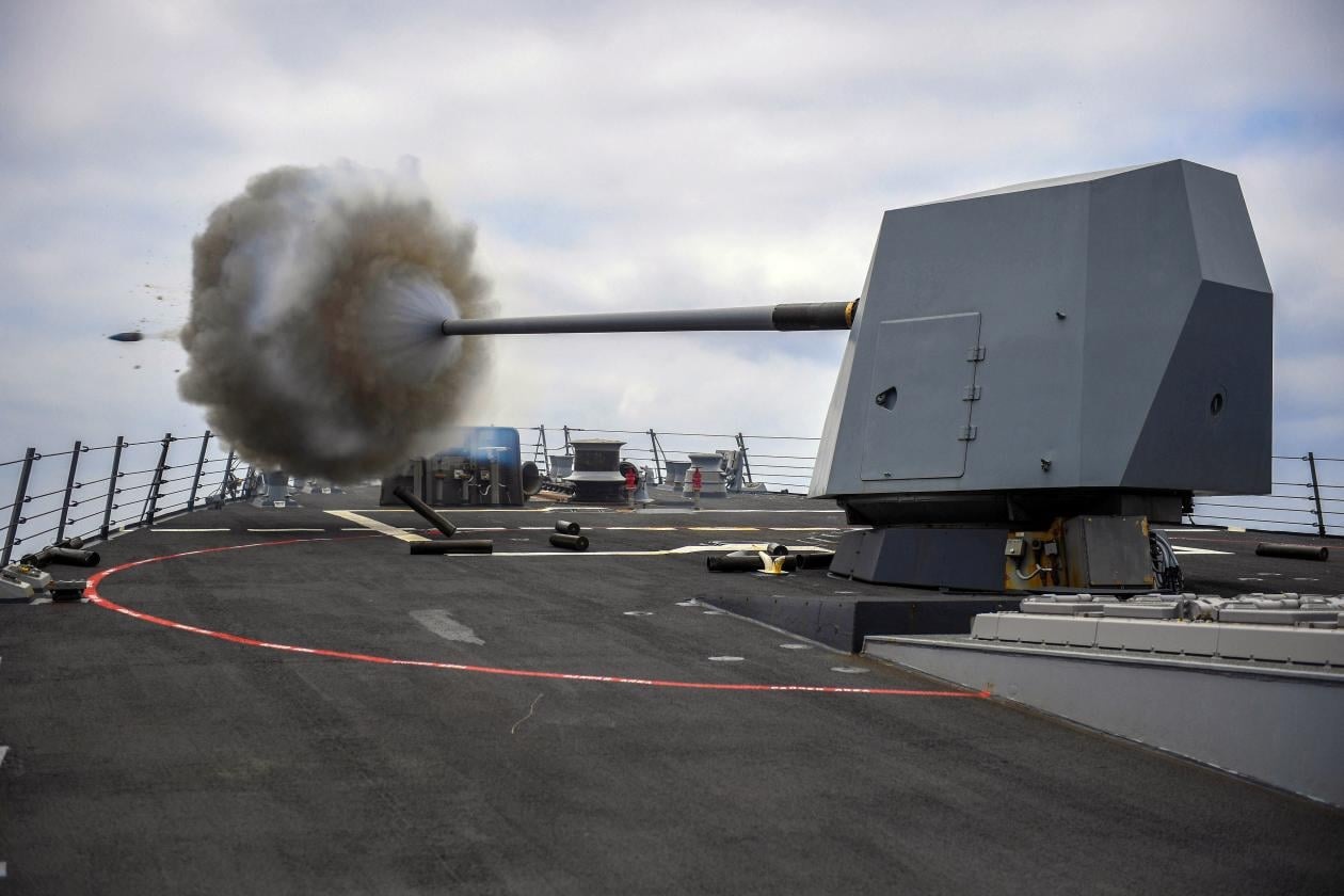11. Mk45 5인치 함포를 발사하는 Arleigh Burke급 구축함