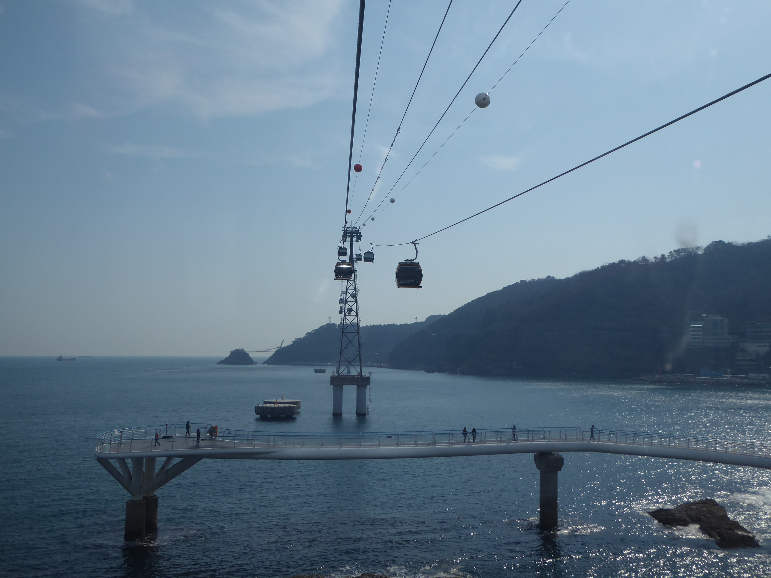 들머리로는 흰여울 문화마을 지나 75 광장이라는 곳에서 버스를 내려 바로 앞에 보이는 목장원을 통과하여 정상까지 갔다가 복천사 쪽으로 하산하여 그곳에서 남항대교를 도보로 건너 송도 케이블카 하부 승차장까지 가서 이번에는 송도 해상 케이블카를 타보았습니다.