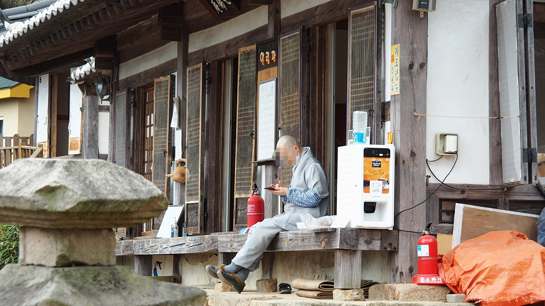 칠불암에 냐려오니 비구니스님 한분이 폰빨에 정신이 팔려 사람 온 줄도 모르네요.