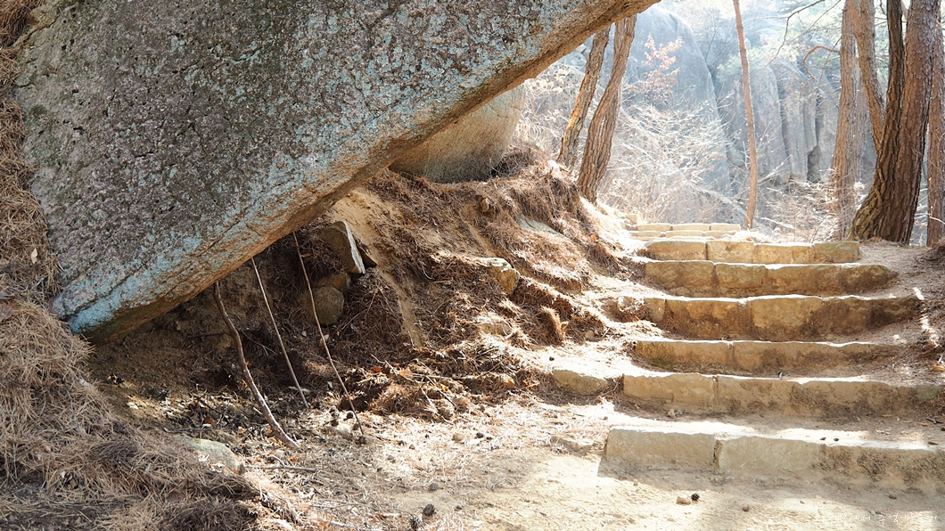 아랫쪽 등산로에는 떨어진 바위들이 몇 조각 있습니다.