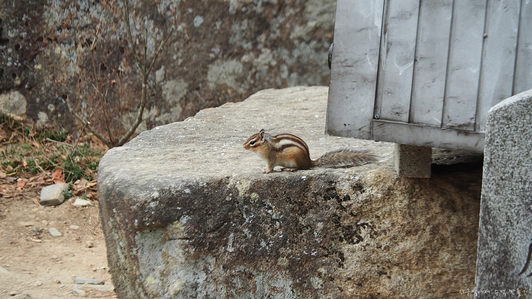 다람쥐보살이 산객을 반깁니다.