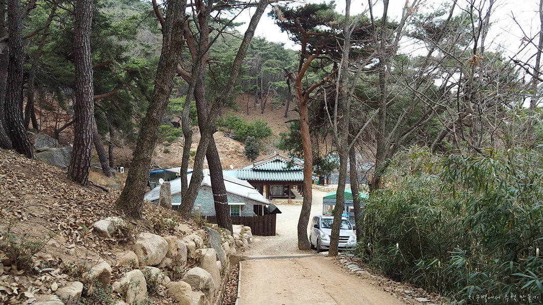 가운데 보이는 곳이 들머리이자 날머리.